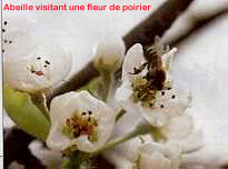 Les abeilles sont peu attirées par les fleurs de poirier, qui ont un nectar peu concentré en conséquence l'apport de ruches doit être élevé.