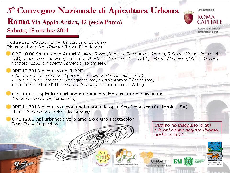 3^ Convegno di apicoltura urbana. Roma 18 ottobre 2014