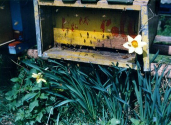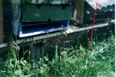 Con erba lasciata volutamente crescere sul davanti arnia |
