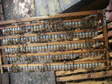 Dopo 72 ore si estrae il telaino con le celle piene di pappa reale (max 0,5 grammi/l’una)